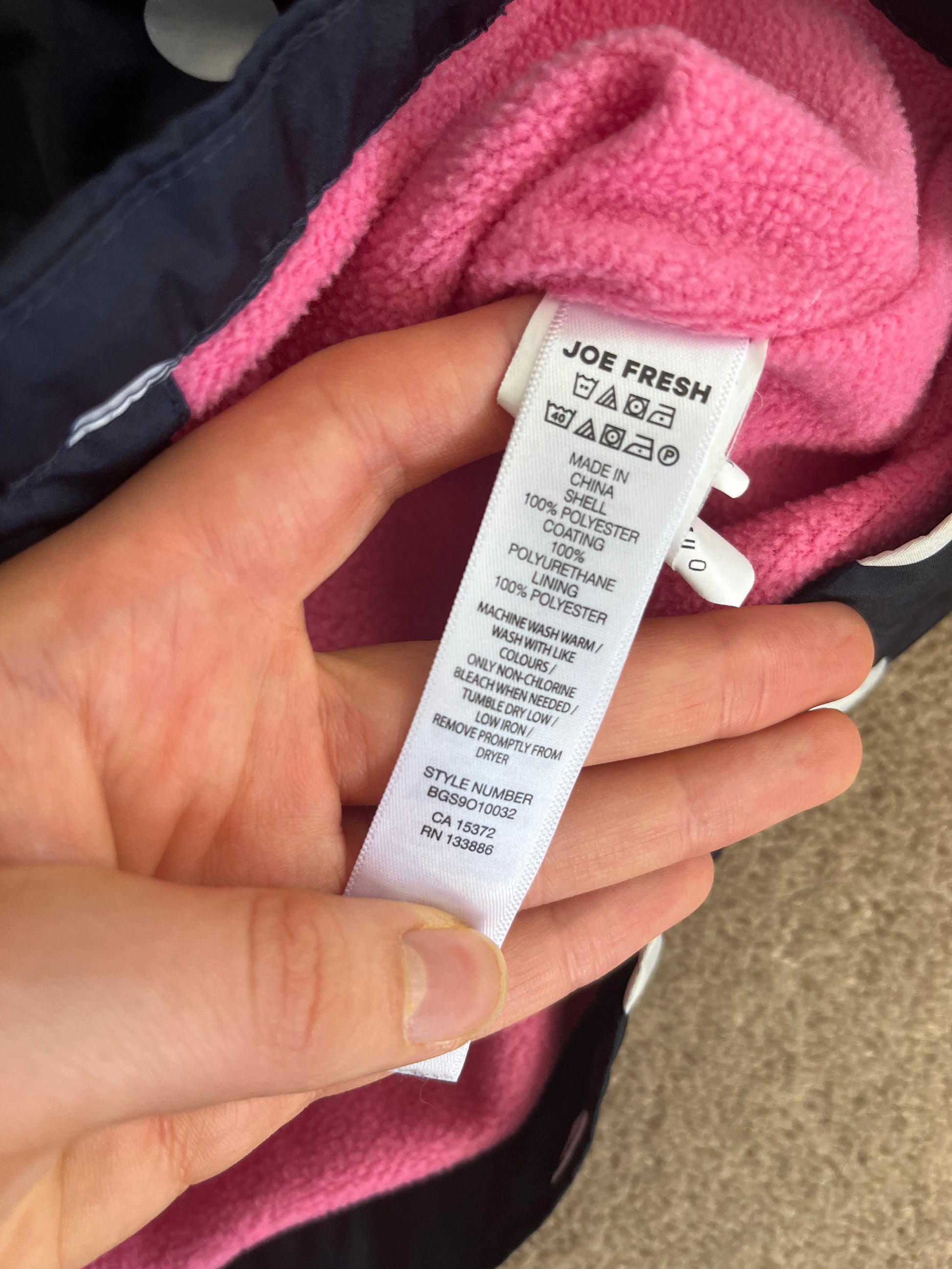 Joe Fresh Lined Coat (might be waterproof but I can’t guarantee it)
