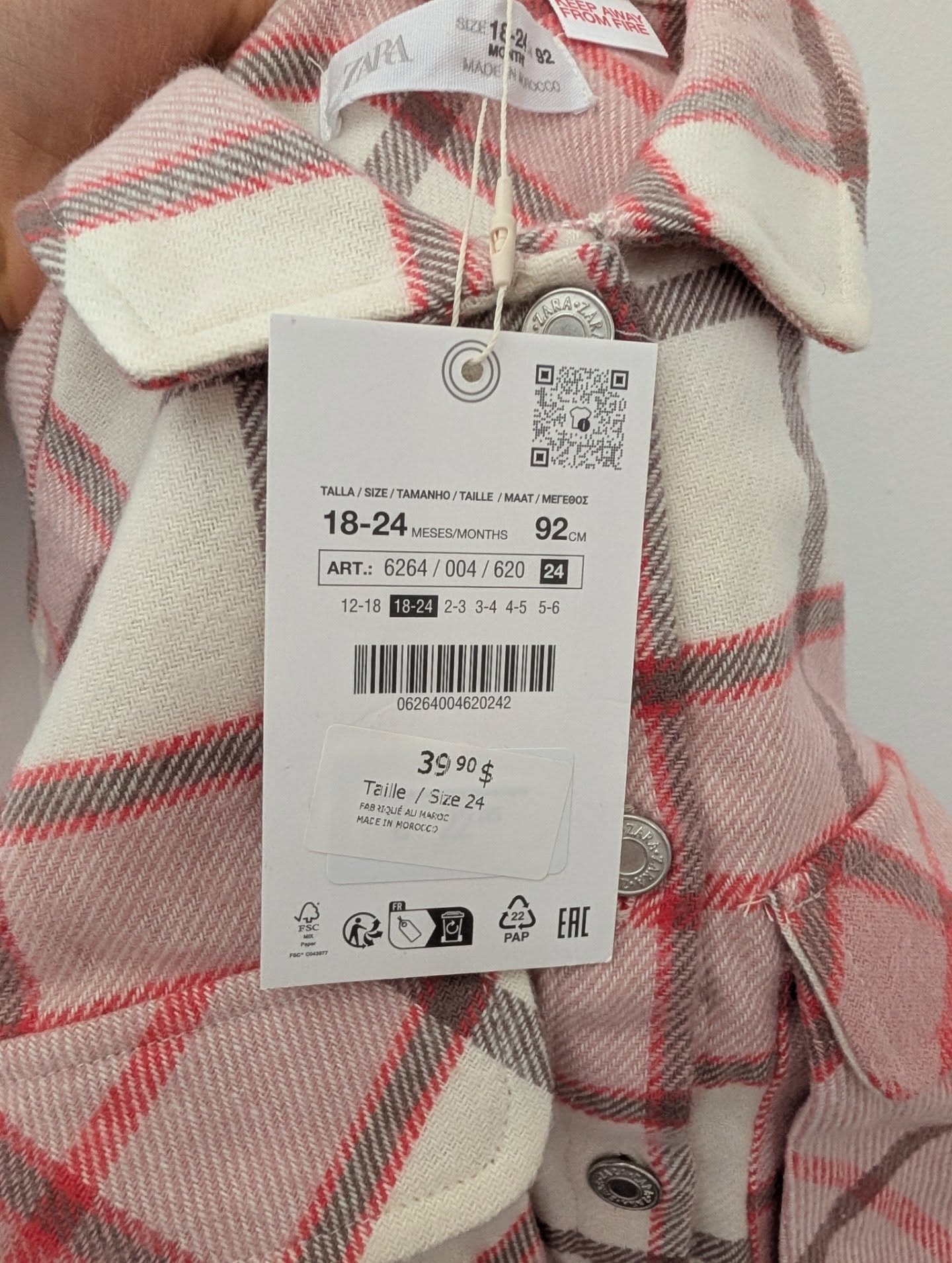 ZARA NWT Shacket Plaid Jacket Pink and Red 18-24m